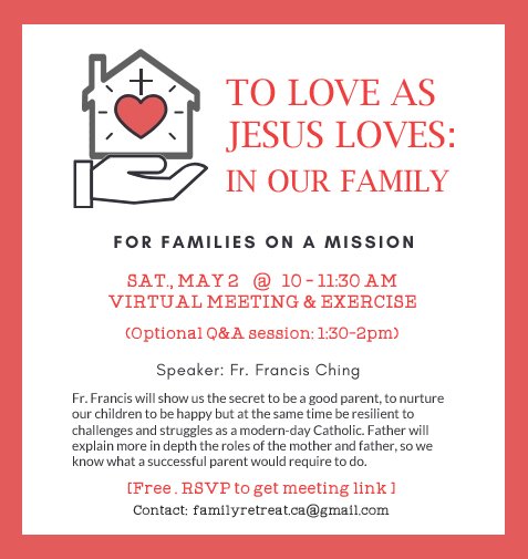 In Q&A format, parents (including spiritual parents) spent a casual afternoon with Fr. Francis to learn more about how to accompany our family members, spiritual children, and friends on their faith journey, and shared tips on how to lead them ever closer to God. (encouraged by Pope Francis in “Evangelii Gaudium” and also inspired by ministries such as FLL & CCO on accompaniment).