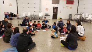 Winter 2020 Families gathering at Gibson Centre